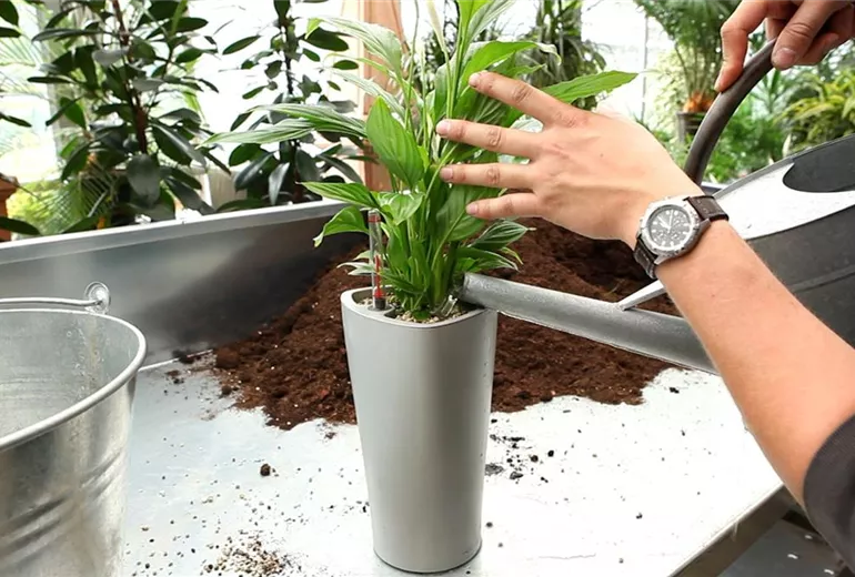 Am besten gedeiht diese beliebte Zimmerpflanze, wenn sie immer gut mit Wasser versorgt wird. Um genau diesen Punkt sicherzustellen ist das Einpflanzen in einen Blumentopf mit Wasserspeicher absolut empfehlenswert.