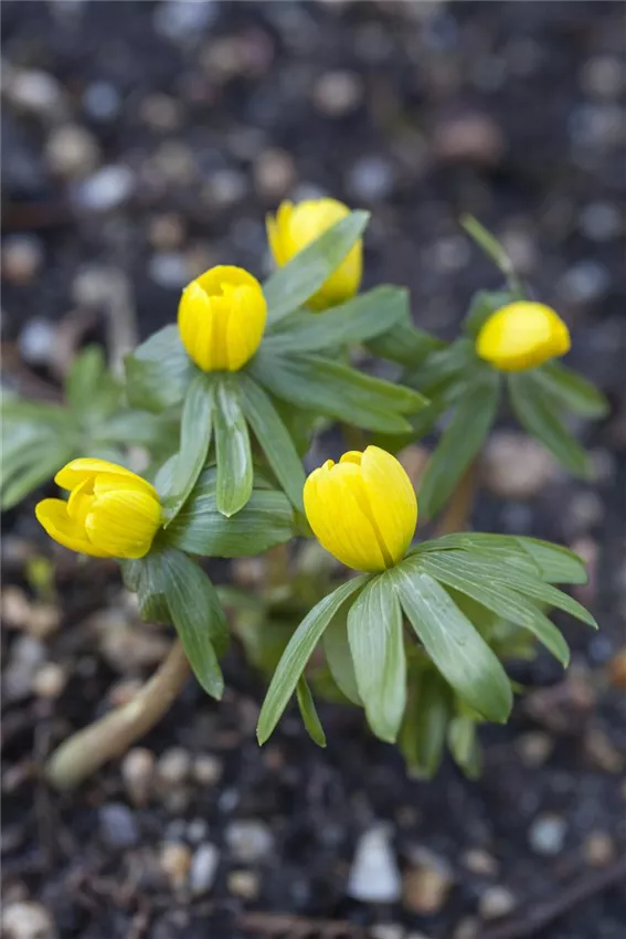 Winterlinge bevorzugen feuchte, aber lockere und humose Böden. Viele Nährstoffe muss der Boden nicht enthalten. Staunässe darf ebenso wenig entstehen wie dauerhafte Trockenheit: Beides vertragen die Knollenpflanzen nicht. Unter laubabwerfenden Bäumen wie im Wald oder zwischen lichten Sträuchern geht es Winterlingen gut. Dort haben sie einen Windschutz, aber zugleich genügend Licht. Eingepflanzt werden die Frühaufsteher unter den Knollengewächsen im September und Oktober. Nach dem Kauf sollten Sie die Winterlinge möglichst direkt einpflanzen, um ein Austrocknen der Knollen zu verhindern. Ist das nicht möglich, legen Sie die Knollen über Nacht in warmes Wasser.