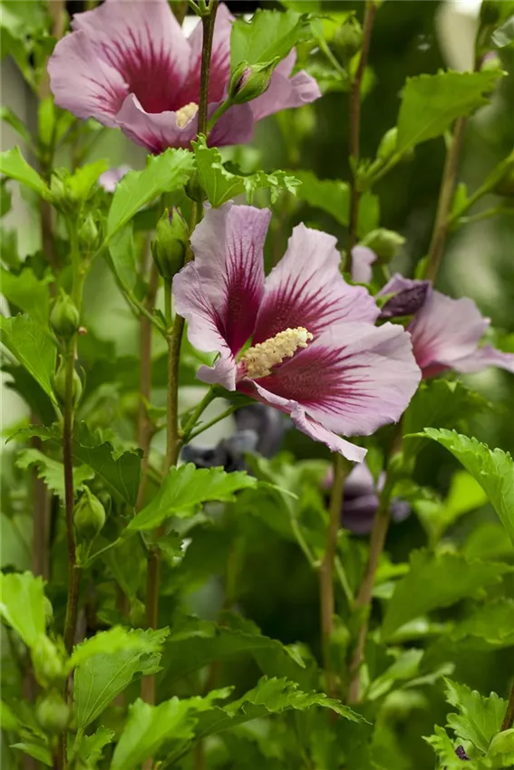 Soll die lauschige Ecke im Garten wirklich blickdicht werden, dann ist der Hibiskus der Garant dafür. Sein verlässlich dichtes Laubwerk sorgt für die kuschelige Atmosphäre, und an dem umwerfenden Flor kann man sich ohnehin nicht sattsehen. Genauso wirkt er auch als botanischer Raumteiler. Hinter dem blühenden Wall kann es mit einem anderen Gartenthema weitergehen. Auch eine Hecke kann er gestalten, denn er nimmt das Beschneiden und Zurechtstutzen nicht übel. Wenn er gemeinsam mit einer Weigelie zur Begrenzung wird, entsteht ein reizvolles Pflanzen-Duett mit ganz eigenem Charme. Auch einige Nummern kleiner verliert er seine Strahlkraft nicht. Betonen Sie die erste Stufe Ihres Terrassenaufgangs mit einem Kübel, in dem Sie Hibiskus, Schönmalven und Glockenblumen zu einem farbenfrohen Trio vereinen. Die Wirkung überzeugt.