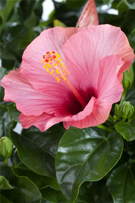 Der Hibiskus ist eine dankbare Pflanze. Viel Sonne, genügend Wasser und einen geschützten Platz möchte er haben, dann legt er richtig los. Weithin sind seine trompetenförmigen Blüten sichtbar. Die produziert er übrigens fast täglich. Dazu fällt das schöne, großvolumige, dunkelgrüne Blattwerk ins Auge. Das Gesamtkunstwerk gibt es mittlerweile in dutzendfacher Ausfertigung. Pastellfarben für die ruhigere Ausstrahlung, griffige Farben für das aufregende Arrangement. Vom terrassenfreundlichen Exemplar bis zum hoch wachsenden Blickfang reicht die Palette. Kann man ihn denn auch noch besonders geschickt einsetzen?